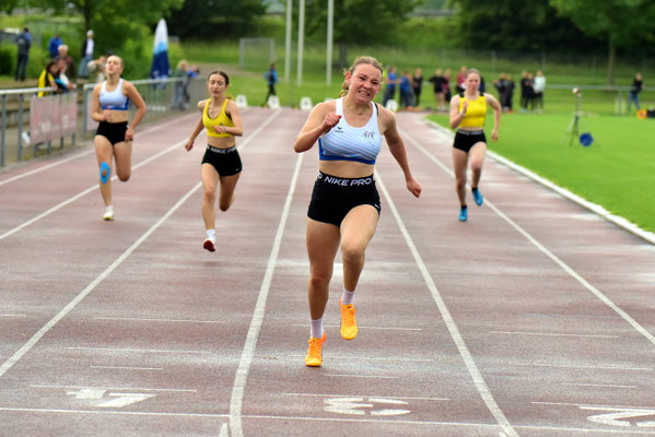 Lina Wegener: 100 m 2. Platz; Hochsprung 2. Platz mit PB und Quali für die Bad. Meisterschaften; Weitsprung 5. Platz W 14
